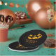 Iss Drink und sei beängstigend mit beängstigendem Jack-o-Laterne-Gesicht auf schwarzen Tellern.
