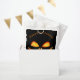 Phantastisches Aquarelldesign mit einem leicht glänzenden Jack o' Laterne-Gesicht auf schwarzem Hintergrund mit anpassbarem "Happy Halloween"-Text
