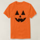 Dieses fröhliche Kürbis-Gesichtsdesign zeichnet sich durch einen schwarzen Jack-oder-Laternen-Blick, Nase und Mund auf einem hellorangen T - Shirt aus. Tragen Sie die ganze Saison lang oder als Ihr Lieblingskleid zu Halloween.