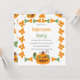 Machen Sie sich mit dieser individuellen Einladung zum Halloween-Party auf einen abwechslungsreichen Abend gefasst! Die Fassade ist mit einem niedlichen, von Hand gezeichnet Design geschmückt und wird von festlich orangefarbenen Augen und grünen Knochen gesäumt. Ein klassisch geschnitzter Jack-o'-Laterne mit einem freundlichen kleinen Geist. Die Rückseite weist ein koordinierendes Muster aus Kürbis, Knochen und dekorativen Punkten auf. Diese Einladung eignet sich hervorragend für ein gespenstisches Soiree, einen familienfreundlichen Halloween-Bash oder ein Kostüm-Party. Personalisieren Sie es einfach mit Ihren eigenen Party-Details für eine unvergessliche Veranstaltung.