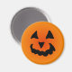 Ein orangefarbener und schwarzer Kürbis-Gesichtsmagnet. Ein glücklicher Jack-o-Laterne Kühlschrank Magnet.