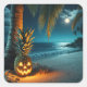 Jack-oder-Laterne Ananas am Strand Quadratischer Aufkleber