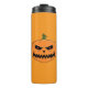 Kühner, feuriger mit Augen Kürbis mit einem finsteren Grinsen, perfekt für Halloween-Kostüme, Dekorationen und festliche Kleidung, die unheimliche Herbstvibes einfangen.