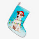 Jack Russell Hund in Schnee mit Weihnachtsmannmütz Kleiner Weihnachtsstrumpf