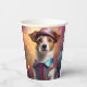 Ein spielerischer Jack Russell Terrier, gekleidet in einem pulsierenden, skurrilen Kostüm vor einem glühenden, magischen Hintergrund. Dieses bezaubernde Design ist perfekt für Tierfreunde.