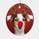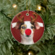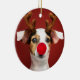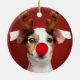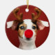 Ein niedlicher Jack Russell Welpe mit Rentierantlern und einer roten Nase ist bereit, viele Welpenküsse für Weihnachten!