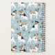 Niedlicher Jack Russell Terrier Hunde sitzen und stehen mit Pfotenabzügen und Hundeknochen-Muster.