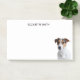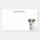 Bild eines niedlichen Jacks Russell Terrier Rasse Typ Hund in der unteren rechten Ecke, Set auf solidem Weiß. Personalisieren Sie Ihre Nachricht mit Ihrem Namen oder Ihrer Nachricht in schwarz-minimalistischem Schriftart.