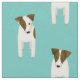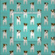 Dieser charmante Jack Russell Terriers Stoff verfügt über acht Cartoon JRT Hunde mit verschiedenen braunen und schwarzen Gesichts- und Körpermarkierungen, geordnet nach gestaffelten Mustern - die Hintergrundfarbe ist anpassbar, zur Zeit leicht aquamarin - Jack Russell Terriers pattern © katz_d_zynes 2019