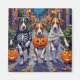 Adorable Jack Russells, die in verspielten Halloweenkostümen gekleidet sind, tragen Kürbiseimer, während sie unter dem mondbeleuchteten Himmel tricksen oder behandeln. Dieses festliche Design hebt die lebendige Haltung der Rasse, die hellen Augen und die energetische Persönlichkeit hervor, die perfekt die sprichwörtliche und dennoch lustige Atmosphäre Halloween-Abends einfängt. Eine spielerische Feier für Hundefreunde und Halloween-Fans gleichermaßen.