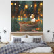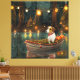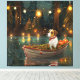Set segelt mit dieser sehr detaillierten Abbildung in den Zauber der Urlaubssaison und zeigt einen stolzen Hund, der in einem festlich dekorierten Boot sitzt und über einen ruhigen Weihnachtssee gleitet. Die Lichter der nahen Kiefernbäume reflektieren das Wasser und warmen, festlichen Glanz, der das gemütliche Ambiente verstärkt. Die Ornamente versetzen sich von den Seiten des Bootes, während die Laternen leuchten und eine Szene schaffen, die das wahre Wesen der Weihnachtswärme und -freude einfängt. Dieses nostalgische Kunstwerk bringt eine Touch von Urlaubsmagie in jeden Raum, perfekt für diejenigen, die den Geist der Saison schätzen.