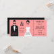 Die Party-Tickets für Fun Jack und Jill Polterabend bieten eine Silhouette eines Bräutigams in einem schwarzen Tuxedo. Es gibt auch eine Silhouette einer Braut in einem weißen Hochzeitskleid. Die Gesichter der Braut und des Bräutigams sind vermisst und haben stattdessen jeweils den Jack und Jill. Es gibt einen Ort, um den Bräutigamen in rosa Schriftart in seinem Tuxedo und den Namen der Brauten in schwarzem Schriftart in ihrem Hochzeitskleid-Bereich hinzuzufügen. Es gibt einen anpassbaren Text, um Datum und Uhrzeit hinzuzufügen. Auf der rechten Seite des Bräutigams und des Brautdesigns befindet sich eine schwarz gepunktete Linie, sodass die Einladung als Ticketstil verwendet werden kann und als bezahlte Stube für den Eintritt in den Jack und Jill Polterabend abgeschnitten werden kann. Im Stub-Bereich gibt es in schwarzem Schriftart einen anpassbaren Text, in dem Sie die Eintrittsgebühr, Adresse, Uhrzeit usw. eingeben können. Das ist ein lustiges und einzigartiges Jack- und Jill Wedding Party Shower Ticket!