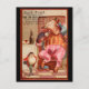 Jakob Feigel, Hersteller & Händler in feinen und schweren Geschirr und mehr, hat eine braune und weiße gedeckte Kuh, gekleidet in Vintagen, viktorianischen, gestreiften Kleidung und blauen Mantel sitzen in einem Stuhl mit einer Lupe. Er sieht einen Frosch in einem roten Mantel, der einen stehenden Hut aufrecht hält. Die Kuh hat einen Fuß auf einem Fußhocker und einen Tisch neben ihm mit einer Flasche und einem klaren Glas Rot. Eine farbenfrohe Werbung, die an jeden Vintagen, viktorianischen oder bäuerlichen Werbeliebhaber gesendet werden kann.