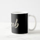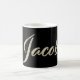 Eine sehr schöne edle personalisierte Tasse / Kaffeetasse / Teetasse im whitegold Lettering Look auf schwarz für Jacob.