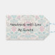 Ein farbenfroher jakobischer Ausdruck mit roten Blume und grünen Blätter schafft einen schönen Hintergrund für ein Geschenketikett oder ein Preisschild für Ihre hausgemachten Produkte. Die Rückseite ist schlicht, in einer ergänzenden, cremefarbenen Farbe, damit Sie Ihre eigene Text- oder Preismarke hinzufügen können.