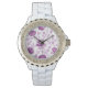 Jacobobobohnenfloral Lg Muster Pinks auf Weiß Armbanduhr