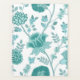 Jakobus Stil Blumenmuster große Oberfläche Muster in kontrastierenden Teals / Ente Ei Blues auf einem weißen Hintergrund.