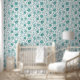 Jakobus Stil Blumenmuster große Oberfläche Muster in kontrastierenden Teals / Ente Ei Blues auf einem weißen Hintergrund.