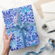 Papier in einem Vintagen William-Morris-Blumenmuster, digital verbessert und farbig, in Kobaltblau und Türkis auf weißem Hintergrund