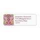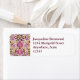Labels in einem Vintagen William Morris Jakobsblumenmuster, digital verstärkt und farbig, in Fuchsienrosa, violett lila und schokoladenbraun, auf weißem Hintergrund