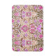Badematte in einem Vintagen William-Morris-Blumenmuster, digital verstärkt und farbig, in Fuchsienrosa, violett lila und schokoladenbraun, auf weißem Hintergrund