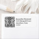 Etiketten in einem Vintagen William Morris Jakobus Blumenmuster, digital verbessert und farbig, schwarz und silbergrau auf weißem Hintergrund
