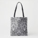 Tasche in einem Vintagen Blumenmuster der William Morris-Jakobsjacoba, digital verstärkt und farbig, schwarz und silbergrau auf weißem Hintergrund