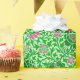 Wrapping Paper in einem William Morris Tapete-Design von Blume in tiefem Smaragdgrün und Kalkgrün, mit Fuchsia-Rosa Akzent, vor einem pastellgrünen Hintergrund