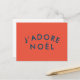 Einfaches, stilvolles J'adore Weihnachten" zitiert Kunsturlaub-Postkarte mit moderner, minimalistischer Typografie in marineblau auf korallenrotem Hintergrund in einem trendigen Feststil. Das Zitat übersetzt in "I Liebe Weihnachten" auf Französisch. Das perfekte Geschenkzeug für die Weihnachtszeit!