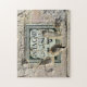 Setzen Sie Ihr Rätsel Fertigkeiten auf die Probe mit diesem Bild eines Hinweises, das immer noch die gewölbten Narben des Krieges am Jaffa Tor in Jerusalems Altstadt zeigt. 11 x 14 Zoll Puzzle mit 252 Stück.