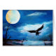 Ein einsamer Falken jagt unter einem vollen, gelblichen Mond... Dieses fotografische Bild entstand aus einem Originalgemälde des sparsamen Malers Reggie Hart (레 지 트).