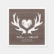 Stallholz Korntafel rustikale Land chic Hirsche antler Hochzeitsnapkins. Braune und weiße Farben. Elegante Vintage Schrift Typografie Design für Sommerhochzeit / Gartenstilfeier. Anpassbare Hintergrundfarben für Braut und Bräutigam. Niedliches Glasgefäß mit verblassten Lieben. Romantisches DIY Thema für Heirat im Juli, August, September etc. Jäger/Jagdthema im Freien.