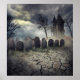 Jagdhaus auf dem Friedhof. Halloween-Design.