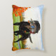 Dieses Kissen hat ein Gemälde eines Jagdhundes darauf.