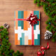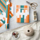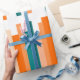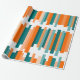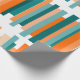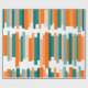 Dieses Verpackungspapier hat ein aquamarines und orangefarbenes Linienmuster in unterschiedlichen Längen.