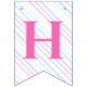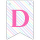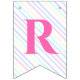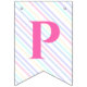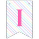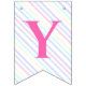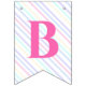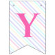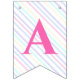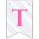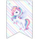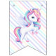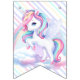 Fahnen zu einer magischen Geburtstagsparty mit einem bezaubernden Einhorn mit Flügeln in den Wolken auf einem Regenbogen Hintergrund.