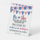 Feiern Sie stilvoll mit diesem trendigen Geschlecht zeigen das Party Begrüßungszeichen. Das Design ist leicht mit Ihrer eigenen Formulierung zu personalisieren und Ihre Familie und Freunde werden begeistert sein, wenn sie dieses fabelhafte Party-Zeichen sehen.