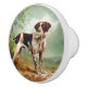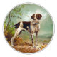 Jägerhund mit Vogel im Mund. Farbenfrohe Vintage zeichn. Retriever mit bunten Jägerfellen