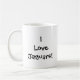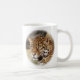 Nahes hohes Foto der Vorlage des Gesichtes eines Jaguars. Eine Seite der Tasse kennzeichnet das Jaguar-Foto, während die andere Seite den Text "ich Liebejaguare" hat. Text ist kundengerecht und kann geändert werden oder entfernt werden.