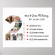 Gedenken Sie mit diesem wunderschön gestalteten Poster Ihren 2. Jahrestag der Hochzeit! Mit ein paar lustigen Metriken wie 730 Tagen Liebe, 104 Wochen Küsse, 17520 Stunden Umarmung, 1051200 Minuten Lächeln und über 63 Millionen Sekunden Spaß, erfasst dieses kreative Poster einige wertvolle Momente des 2. Jahres eines verheirateten Ehepaares zusammen. Diese Wanddekoration eignet sich hervorragend für besondere Erinnerungen zum Feiern eines zweijährigen Hochzeitstages eines Ehemanns und einer Ehefrau. Alle Wörter sind vollständig anpassbar und die Sortiernummer des Fotos hat 7 Steckplätze für Ihre speziellen Fotos.