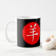 Jahr der Schaf- oder Ram chinesischen Mondneujahrskalligrafie-Charakter illustriert auf rot und schwarz.