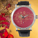 Feiern Sie das Jahr der Schlange mit dieser wunderschön gestalteten Uhr 2025. Diese Armbanduhr mit ihren faszinierenden goldenen chinesischen Motiven, darunter eine Schlange, Laternen und schönen Symbolen auf einem lebendigen roten Hintergrund, ist perfekt für das Klingen im chinesischen Neujahr. Das elegante schwarze Lederband ergänzt das kühne Design und ist somit ein raffiniertes Accessoire für jede festliche Veranstaltung. Dieses Zeitwerk ist ideal, um Ihrer Sammlung eine Touch von kultureller Bedeutung zu verleihen oder sie zu ergänzen und verbindet Tradition und Eleganz in einem atemberaubenden Paket.