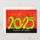 Dieses handgezeichnet Design verfügt über zwei niedliche grüne Schlangen auf rotem Hintergrund. Die grünen Schlangen Drehung ihren Körper, die Zahlen 20 bzw. 25 zu bilden. Die erste Schlange und die zweite Schlange schauen sich liebevoll an und dazwischen ist ein kleines rosa Herz. Über dem roten Hintergrund kann man Feuerwerk sehen. Unter den Schlangen steht "Jahr der Schlange" auf schwarzem Hintergrund.