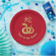 Chinesische Lunar Neujahr der Schlange Papier Teller mit anpassbaren Text und Hintergrundfarbe.