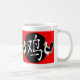 Jahr der chinesischen Neujahrskalligrafie des Rooster mit illustriertem Tier auf Rot.