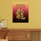 Feiern Sie das neue Jahr in China mit diesem auffallenden Goldfolienposter, das die chinesische Schriftform für den Drachen, das fünfte Zeichen/Tier im östlichen Zodiakum und traditionelle feierliche chinesische Grüße, pseudoprägt auf einem goldrot-roten Hintergrund. Design © W.H. Sim. Weitere Informationen unter zazzle.com/expressionsoccasions