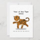 Dieses Jahr des Tiger-Designs ist ein laufender Tiger, dessen chinesisches Wort "Tiger" in seinen Streifen geschrieben ist und in den letzten Jahren dieses Tierkreiszeichens, das als Referenz geschrieben wurde. Personalisieren Sie die Rückseite dieser Karte mit Ihrem eigenen Header oder Nachricht, um für saisonale Grüße oder Einladungen zu neuen Jahresfeiern zu verwenden.