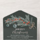 Rustikal grüne Kiefernrot Frohe Weihnachtszeit grüßen 6 Fotos Karten Jahr in Rezension Familie Newsletter mit grüner Kiefernzweig, roten Beeren, eisblauen Weihnachtsschmuck und eleganten Drehbuch Schriftart Typografie auf dunkelgrün. Ein perfektes Ganzes in einer Weihnachtskarte. Klicken Sie auf Design bearbeiten, um Ihre Fotos perfekt zu gestalten!