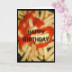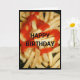 Ein Nahaufnahmen von goldenen Pommes frites, mit Ketschup bedeckt, ist Gegenstand meiner Geburtstagskarte "Happy Birthday - The Years Never scheinst To Ketchup To You!".