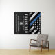 Dieses Design verfügt über eine Polizeiflagge mit schwarz-weißen Streifen und einen dünnen blauen Streifen. Dieser Wandteppich ist ideal, um einem Offizier, der ein Jubiläum feiert, Anerkennung zu zollen oder einem pensionierten Strafverfolgungsbeamten, Sheriff, Kapitän oder Chef für ihre Dienstjahre zu danken.